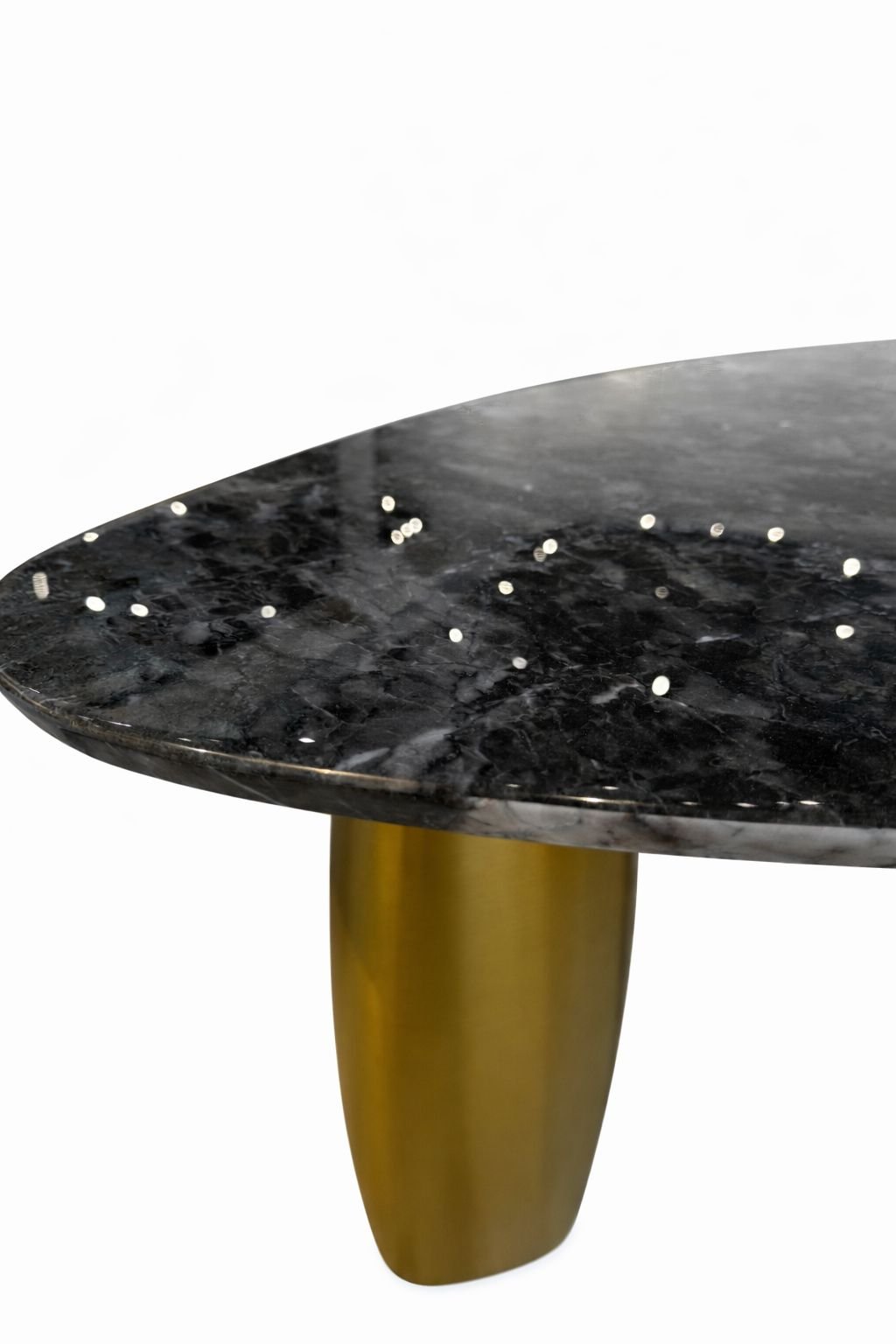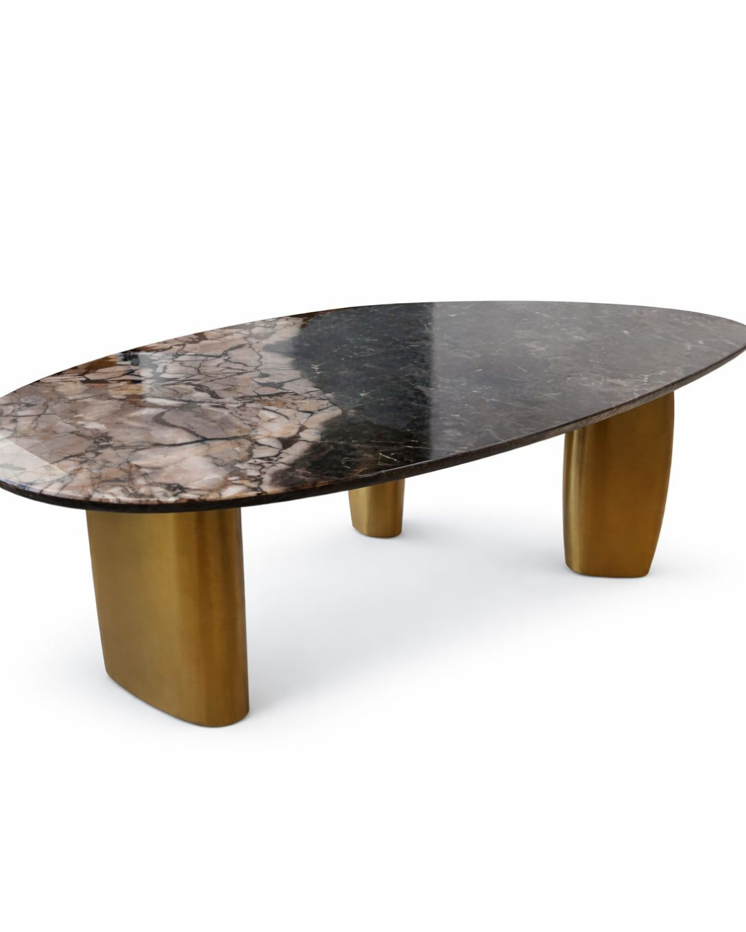 Black Oval-Top Coffee Table with Gold Column Legs
