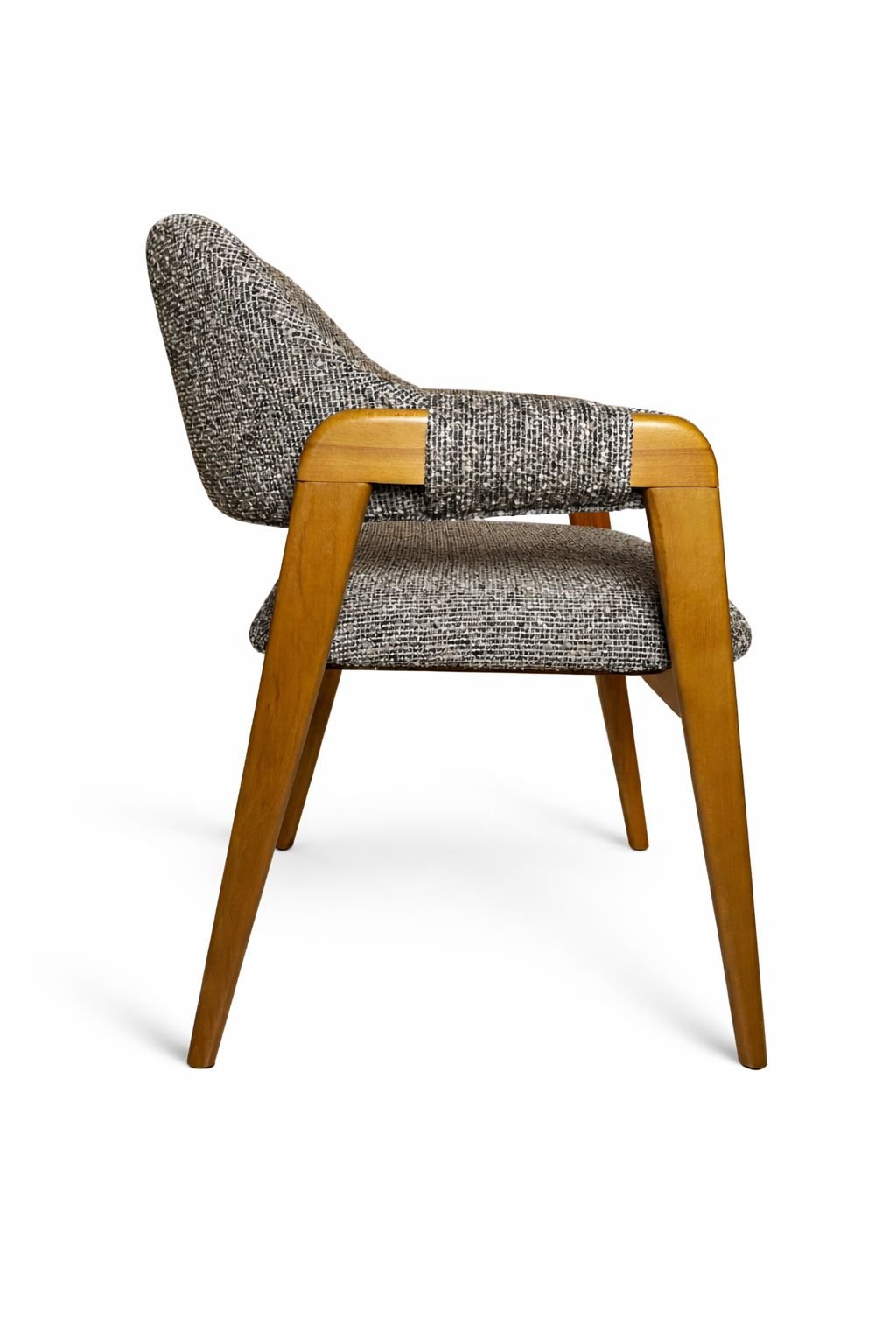 Open-Back Upholstered Accent Chair featuring a solid wood frame, designed with a stylish and comfortable form ideal for contemporary living spaces.